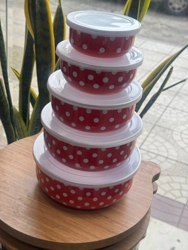 ظرف نگهدارنده لعابی ۵ تایی قرمز خالخالی۱٬۲۹۰٬۰۰۰ تومان