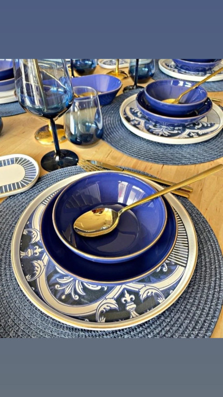 سرویس چینی ابی پررنگ طرح دار وسفید ۶ نفره۲۴ تکه ترکیه