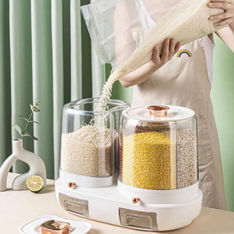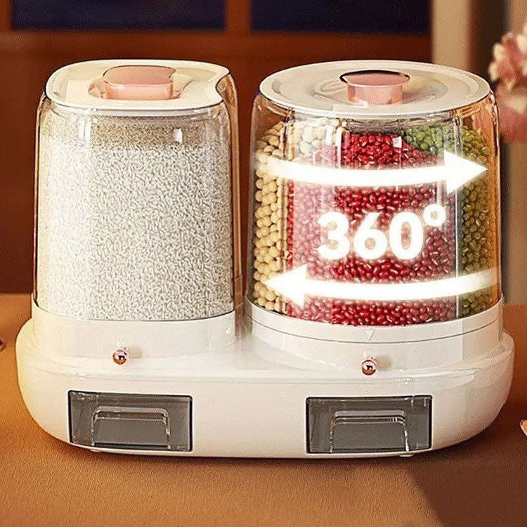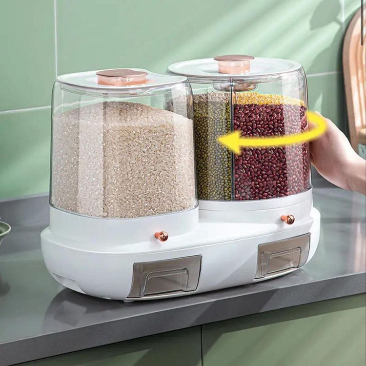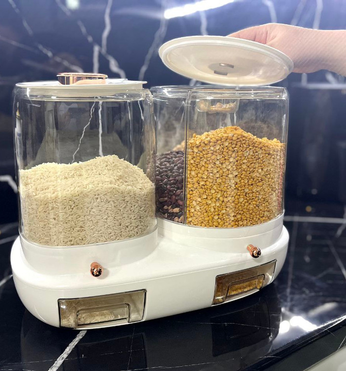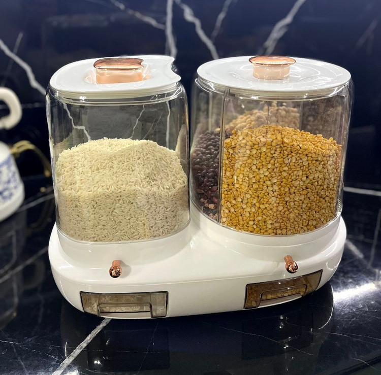 جاحبوباتی و جابرنجی یه جا بهترین محصول برا کساییکه مشکل جا دارن خیلی شیکو و با کیفیت ✅حجم مخزن برنج سمت چپ : ۴کیلو گرم ✅مخزن حبوبات چرخشی و دارای ۴ قسمت هرکدام حجم ۱٫