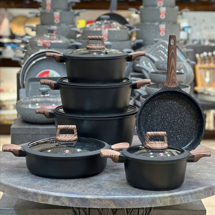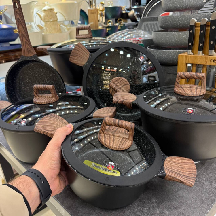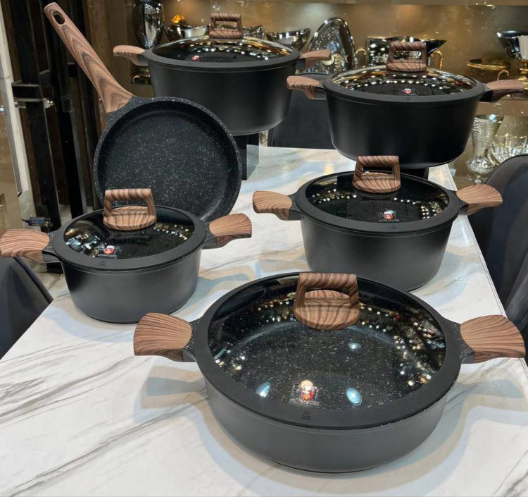 سرویس قابلمه مشکی دسته قهوه ای المان