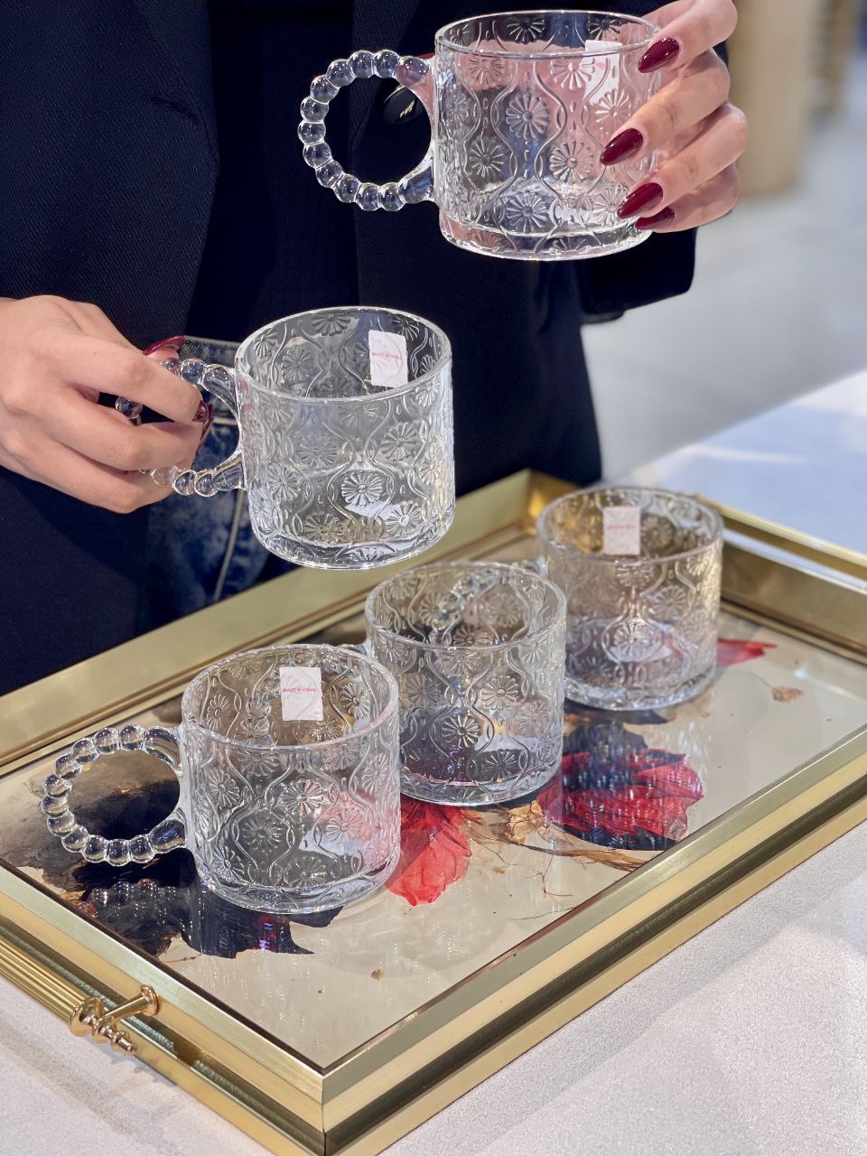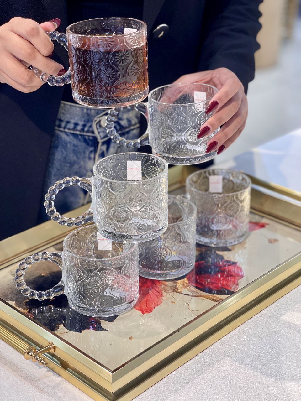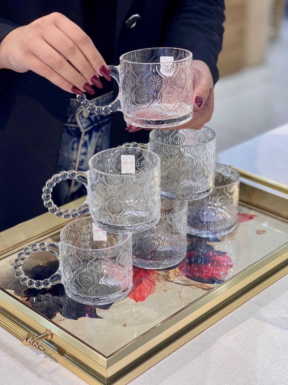 فنجون۶ عددی دسته مرواریدی