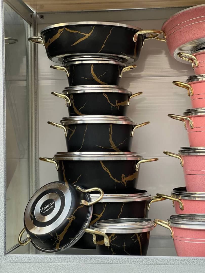 قابلمه ۱۴ پارچه چدنی طرح طلایی و نقره ای رندوم کد۱۰۲۱۷