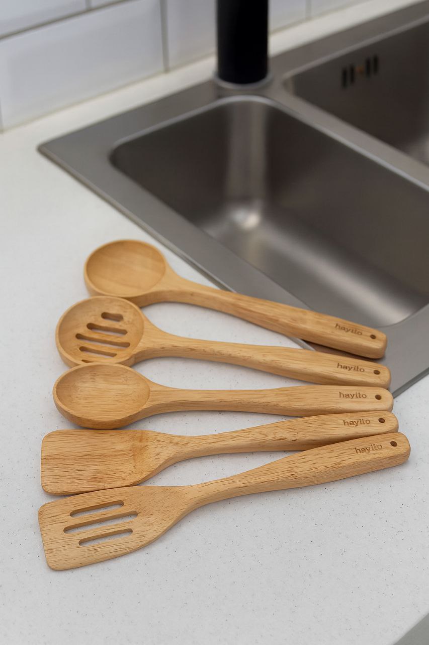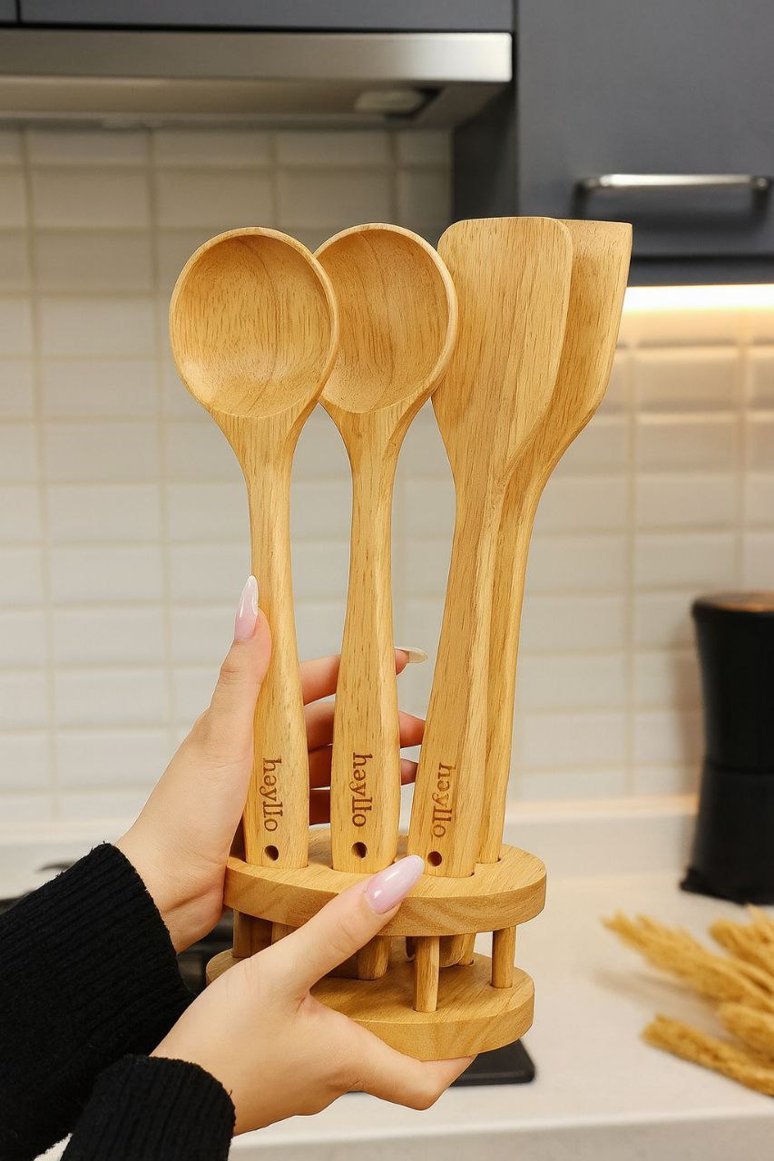 کفگیر ملاقه بامبو استند ۶ پارچه کد ۱۰۲۷۳