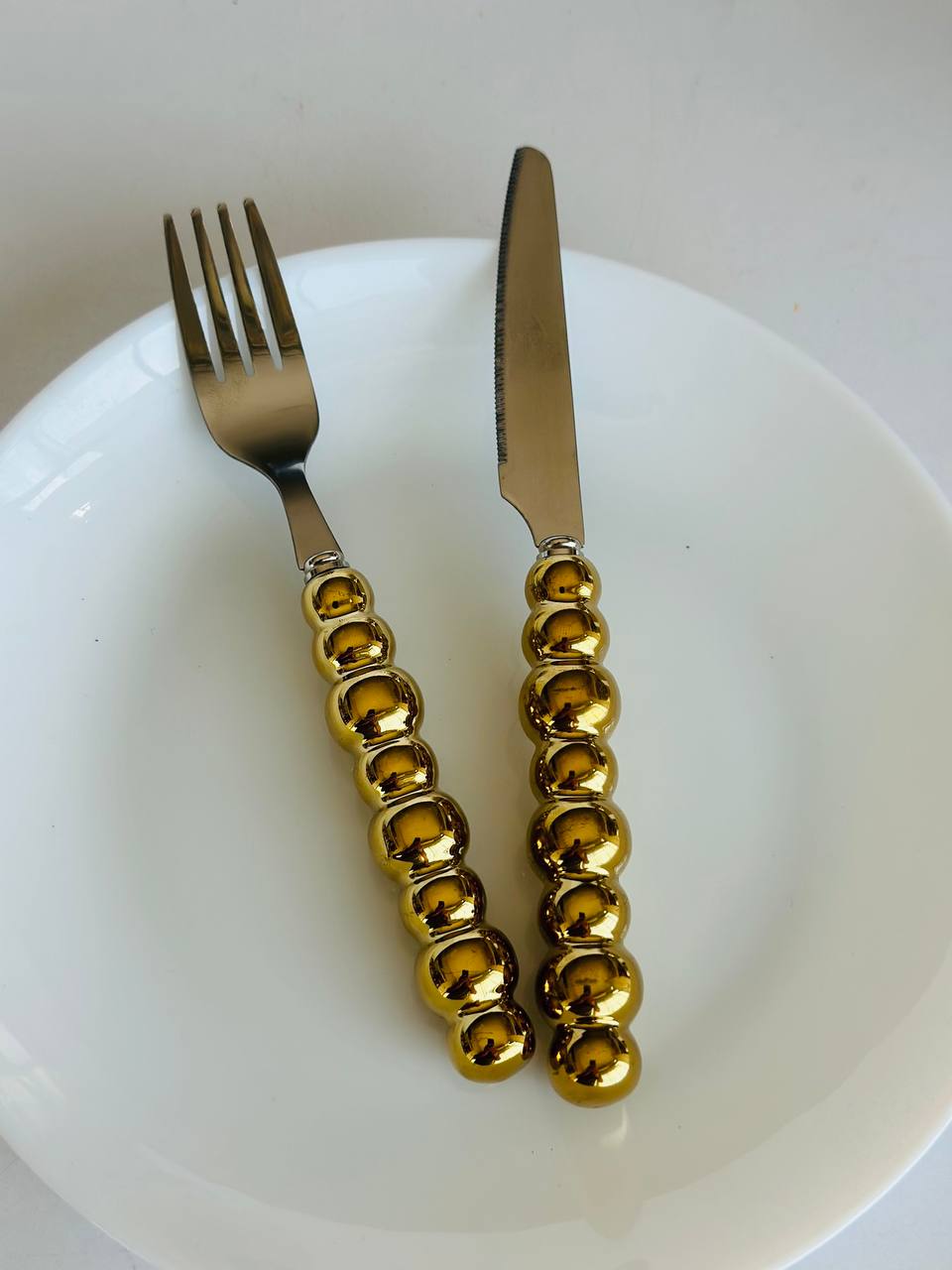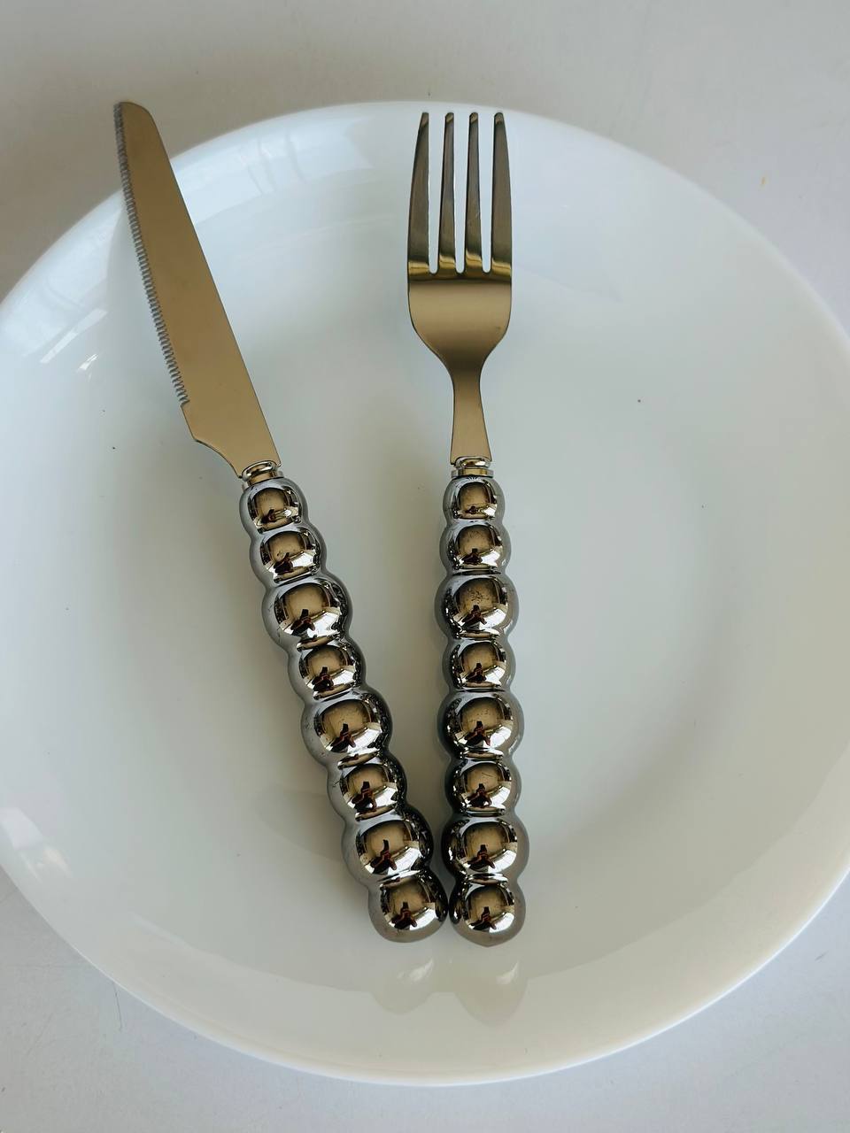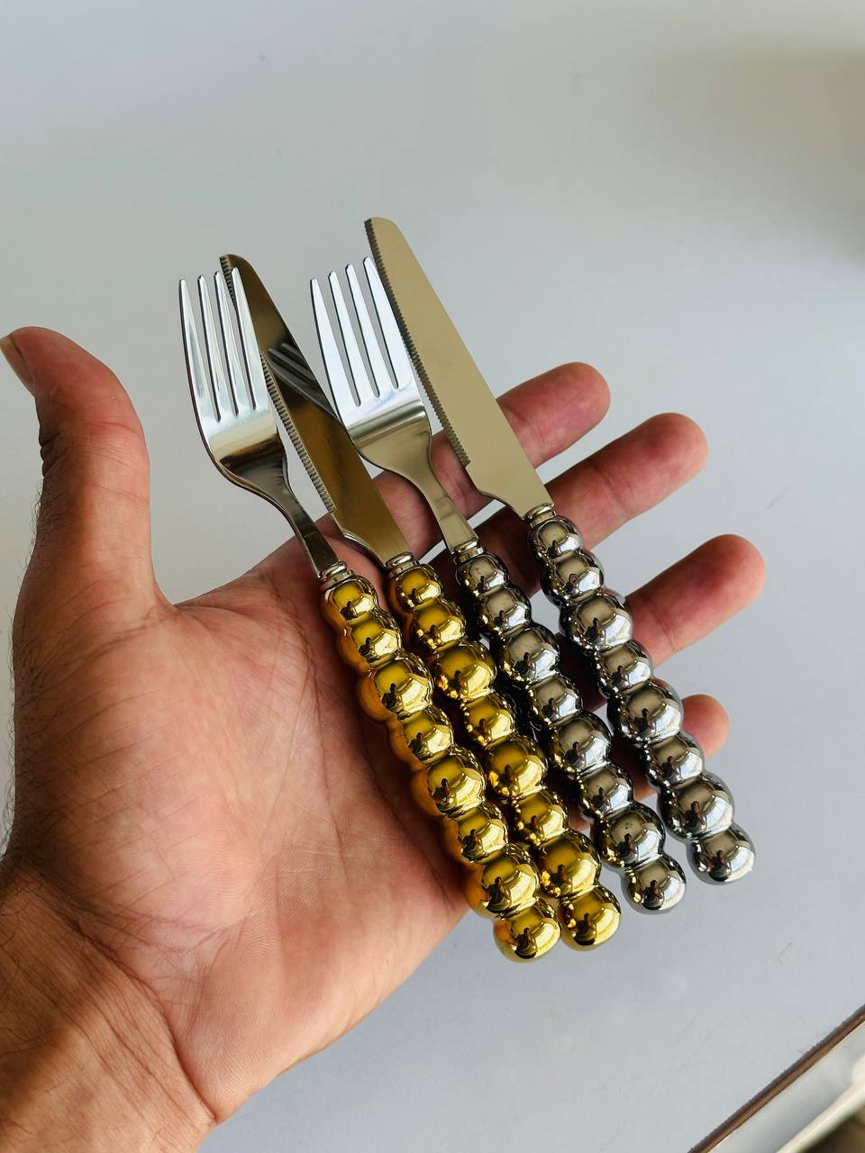 کارد و چنگال ۶ نفره نقره ای طلایی کد۱۰۴۴۷