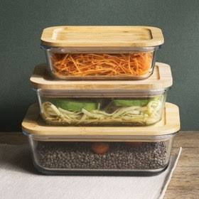 ظرف ۳ تکه پیرکس درب بامبو ۱۰۴۴۹