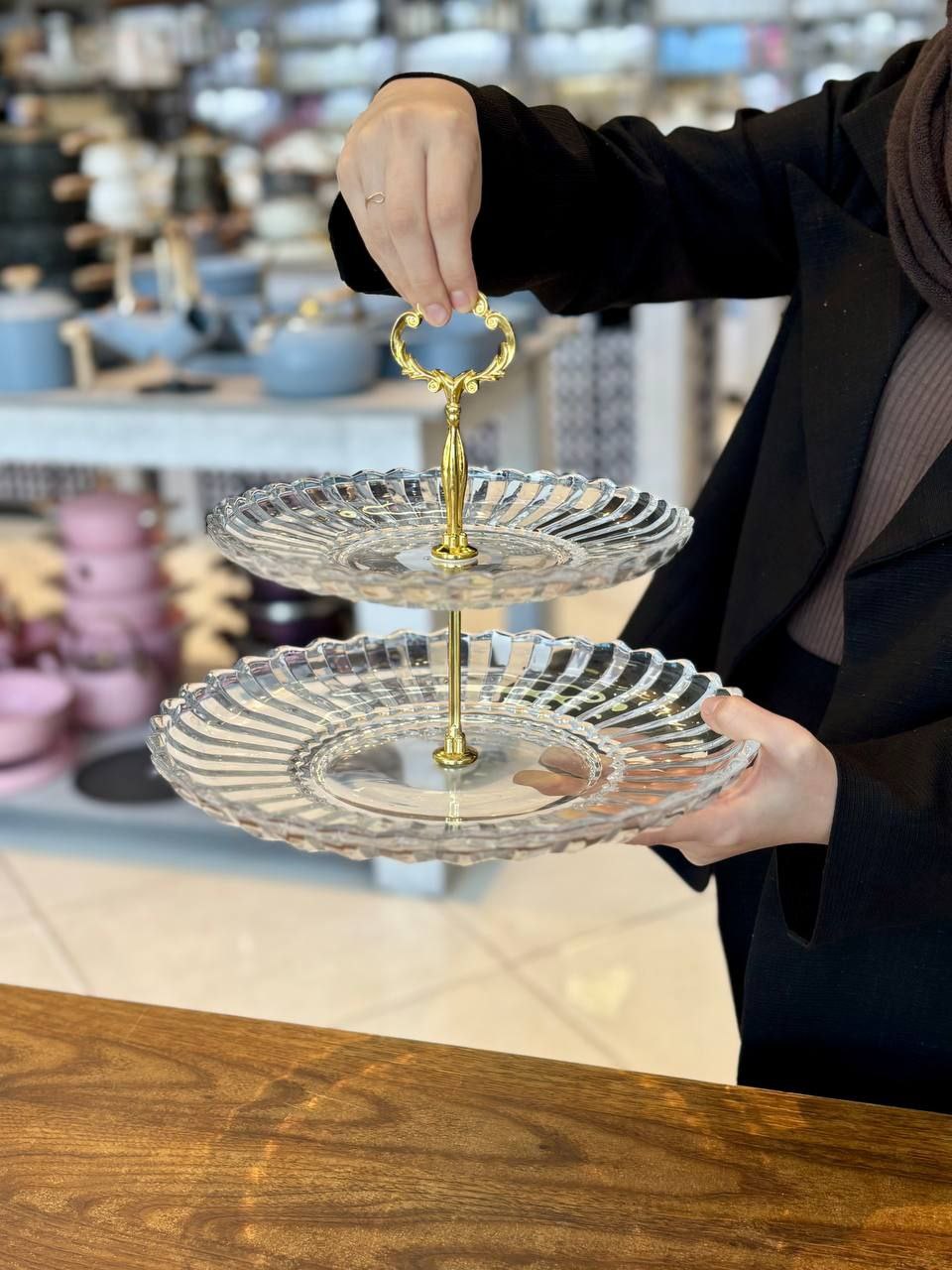شیرینی خوری ۲ طبقه بلوری وارداتی کد۱۰۴۷۲