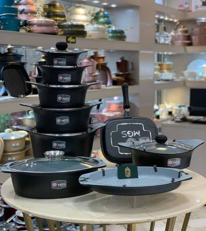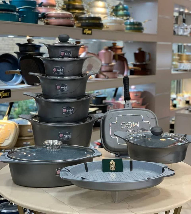 جنس درجه یک ⚜️روکش گرانیت ضدخش ⚜️جنس بدنه چدن ⚜️درب ها رینگ استیل ⚜️دارای سوپاپ خروجی هوا ⚜️کف پخش حرارت یکنواخت ⚜️رنگ ثابت ⚜️بسته بندی حرفه ای و شیک 💎شامل:👇 قابلمه سایز ۱۴-۲۰-۲۴-۲۸-۳۲ تابه مرغ سایز ۳۸ تابه ماهی سایز ۳۸ تابه رژیمی سایز ۳۲ درب تابه سایز ۳۲ دو عدد دستگیره پیشبند