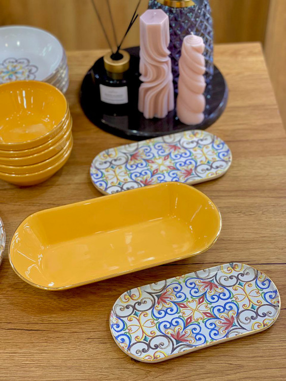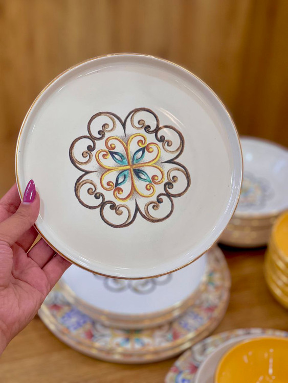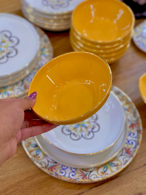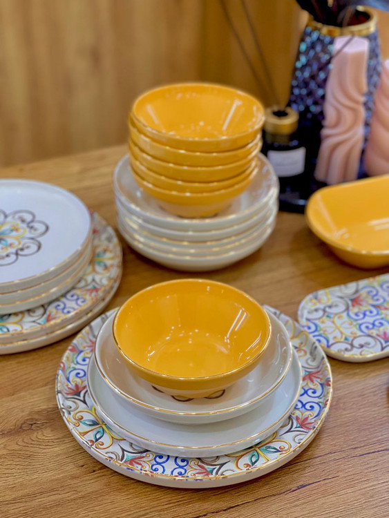 سرویس چینی ترک ۶ نفره زرد و سفید طرح دار
