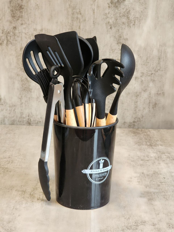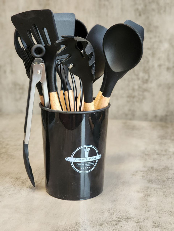 کفگیر ملاقه ۱۲ پارچه مشکی سیلیکونی کد10303