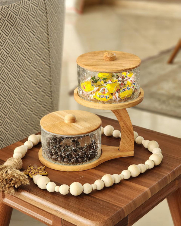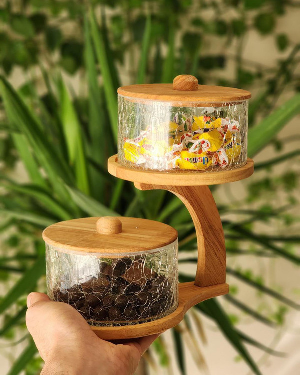 شکلات خوری ۲ طبقه چوب و شیشه ترک فقط۷۵۰