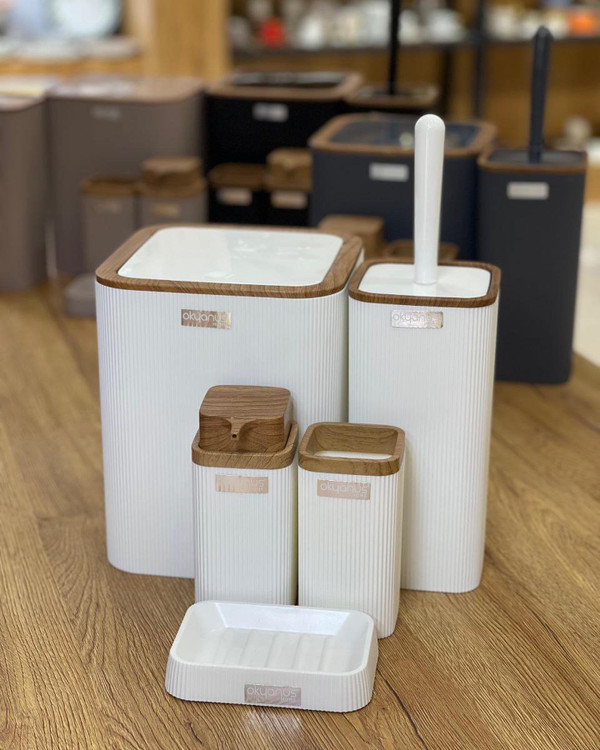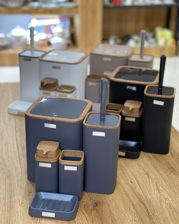 ست بهداشتی پنج پارچه محصول ترکیه جنس: اکرولیک کاملا ضد آب درب کلیکی یک عدد سطل یک عدد جا مسواکی یک عدد جا مایع یک عدد جا صابونی یک عدد فرچه با ١/١٩٠ @sabery_kitchen @sabery_kitchen @sabery_kitchen