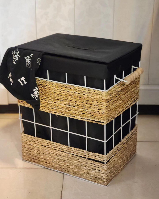 سبد لباس کثیف فلز و حصیری قابل شستشو کیفیت