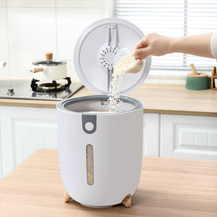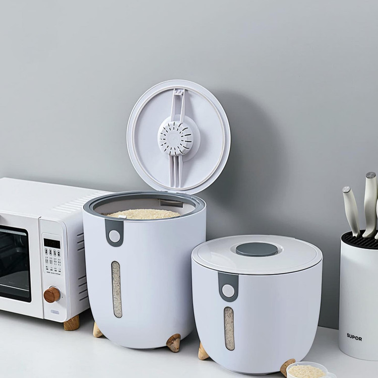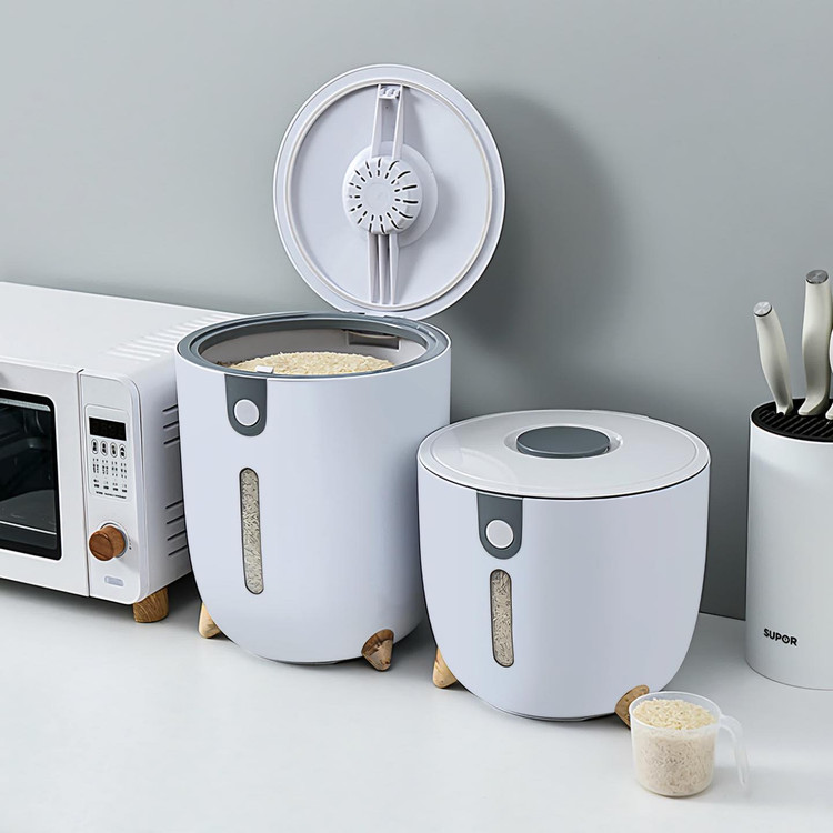 و خيلي بدوووووووييد جابرنجی وارداتی سایز بزرگ دارای درب ۳۶۰ درجه باز شدن درب با فشار یک دکمه بسته شدن درب بصورت مگنتی جنس بدنه پلیمر ABS + PP جنس پایه طرح چوب دارای درب واشردار درب بازشونده اتوماتیک ۹۰ درجه دارای تهویه در قسمت درب و محل قرارگیری (میخک ، سیر) دارای یک عدد پیمانه رنگبندی سفید طوسی حجم ۱۰ کیلو ارتفاع ۳۰ قطر کف ۲۵ قطر درب ۲۶