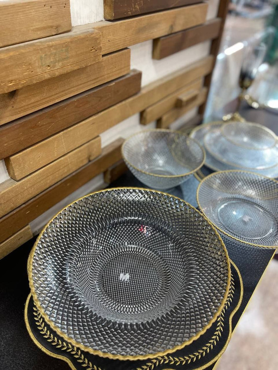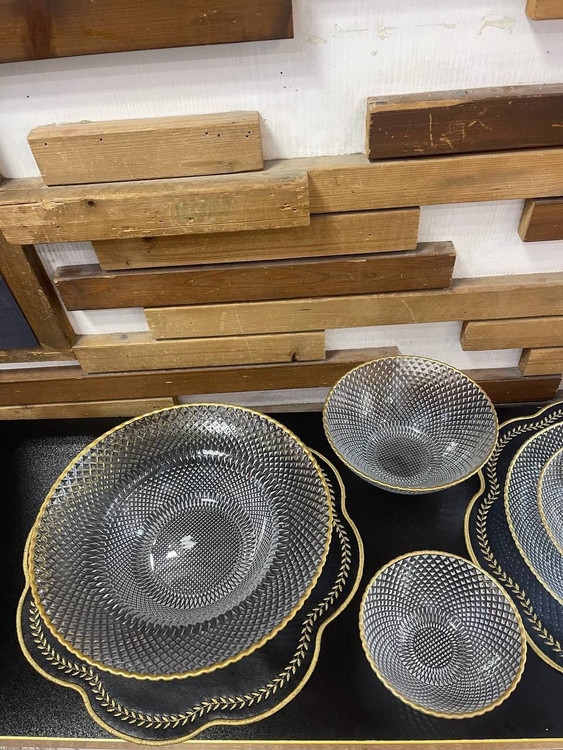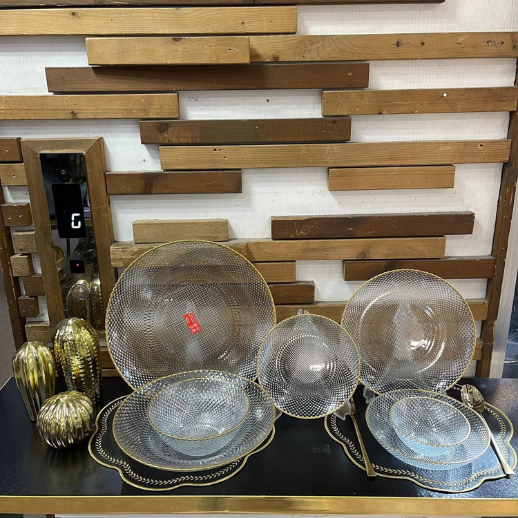 سرویس غذاخوری بلوری لب طلا ۳۲پارچه شامل یک دیس یک کاسه ۶ خورشت ۶ پلو ۶ پیش دستی ۶ پلو بگوشت ۶ پیالع ست کامل۶ نفره 1/590